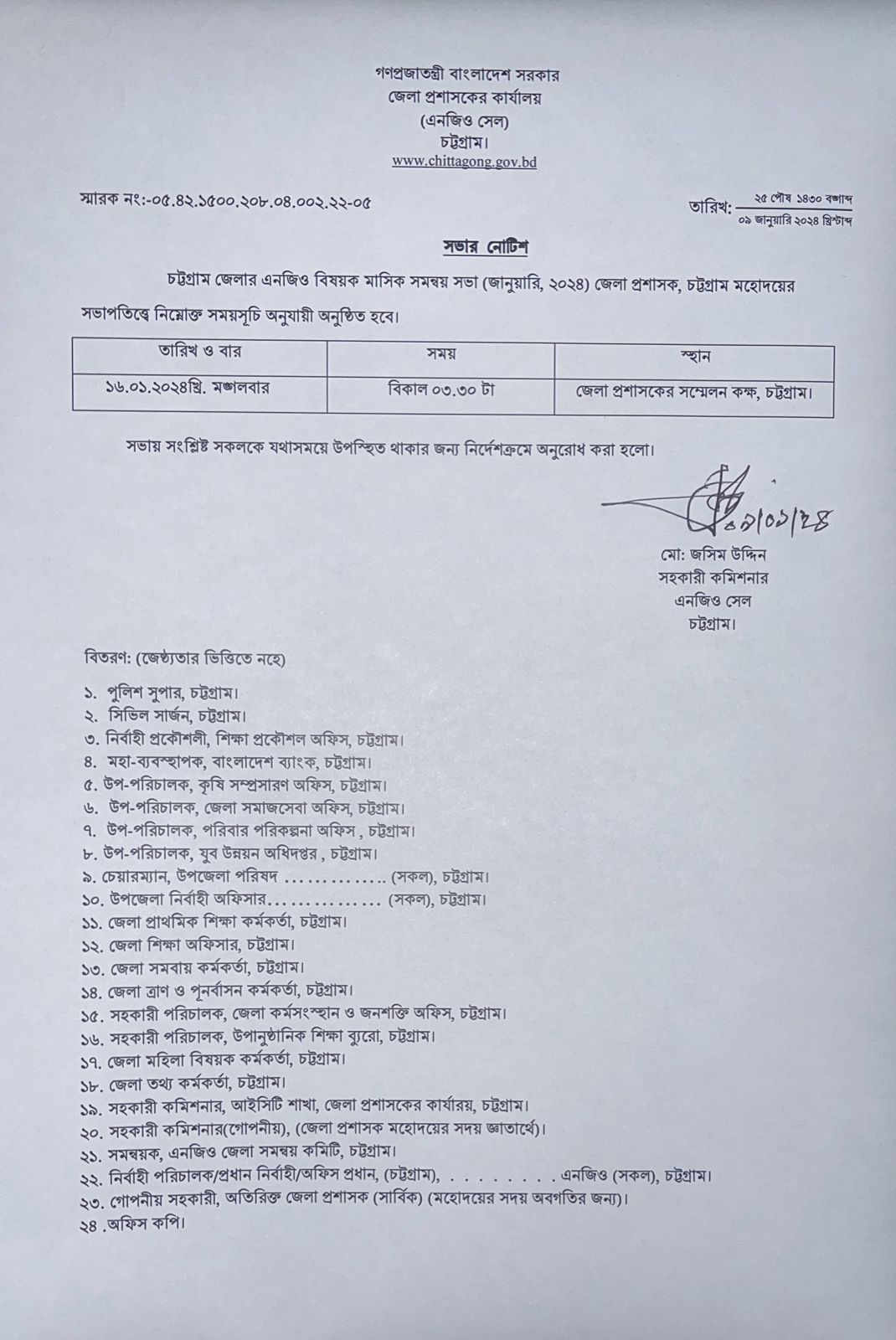 Monthly Meeting Notice January 2024 Meeting Date: 16.01.2024 Time:03.30 PM